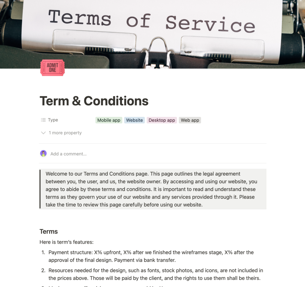 - Finally, the Terms and Conditions section outlines important criteria regarding your working style to ensure that you have a smooth and productive collaboration.